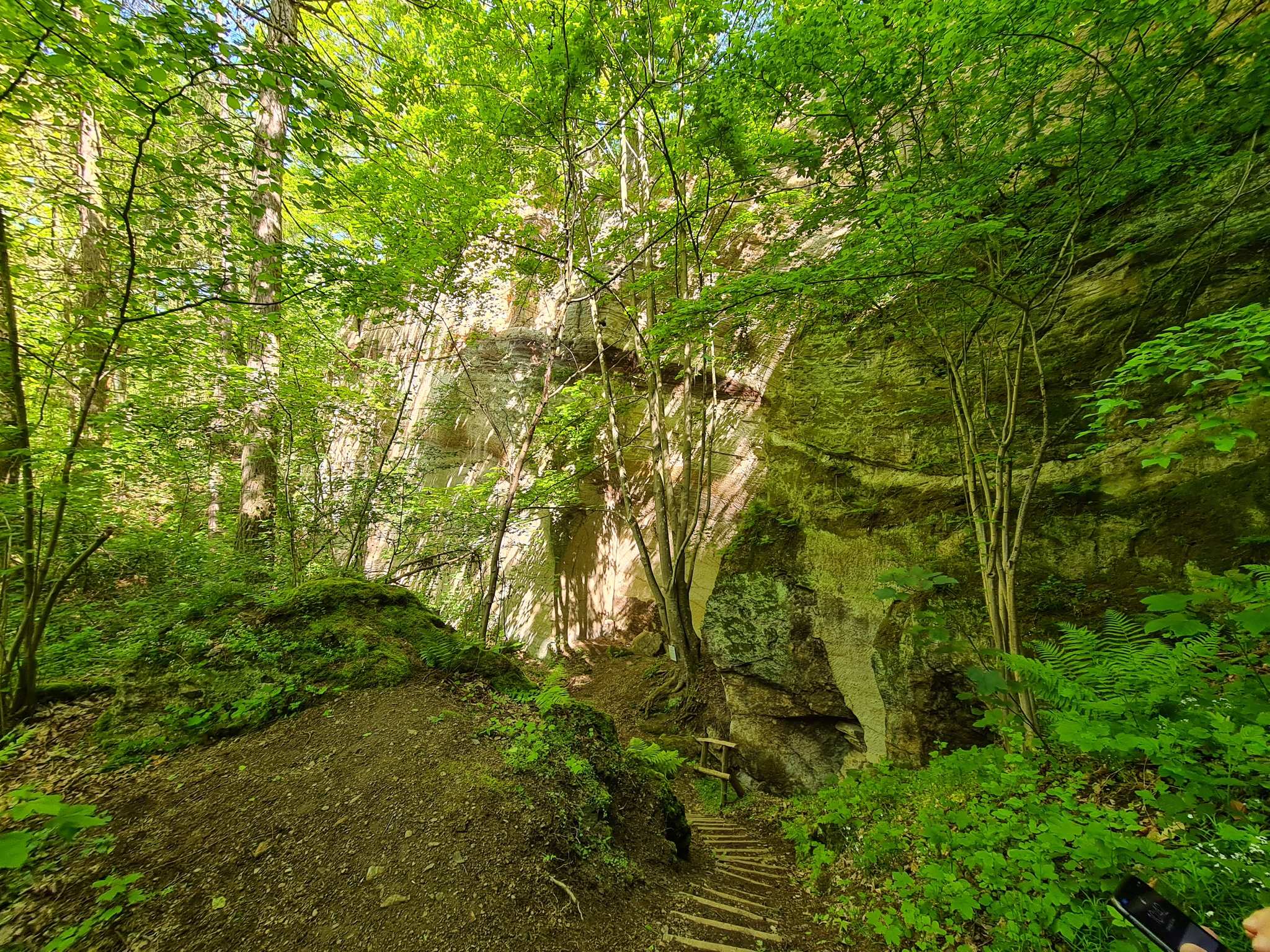 Der Layfelsen sind mächtige Tuffsteinwände, die im vorigen Jahrhunderts durch den Abbau von Tuffstein zum Backofenbau entstanden sind. Die glatten Felswände ragen bis zu 30 m in die Höhe. Durch die von Menschenhand geformten Felslandschaft des ehemaligen Steinbruchs führt schöner Pfad.