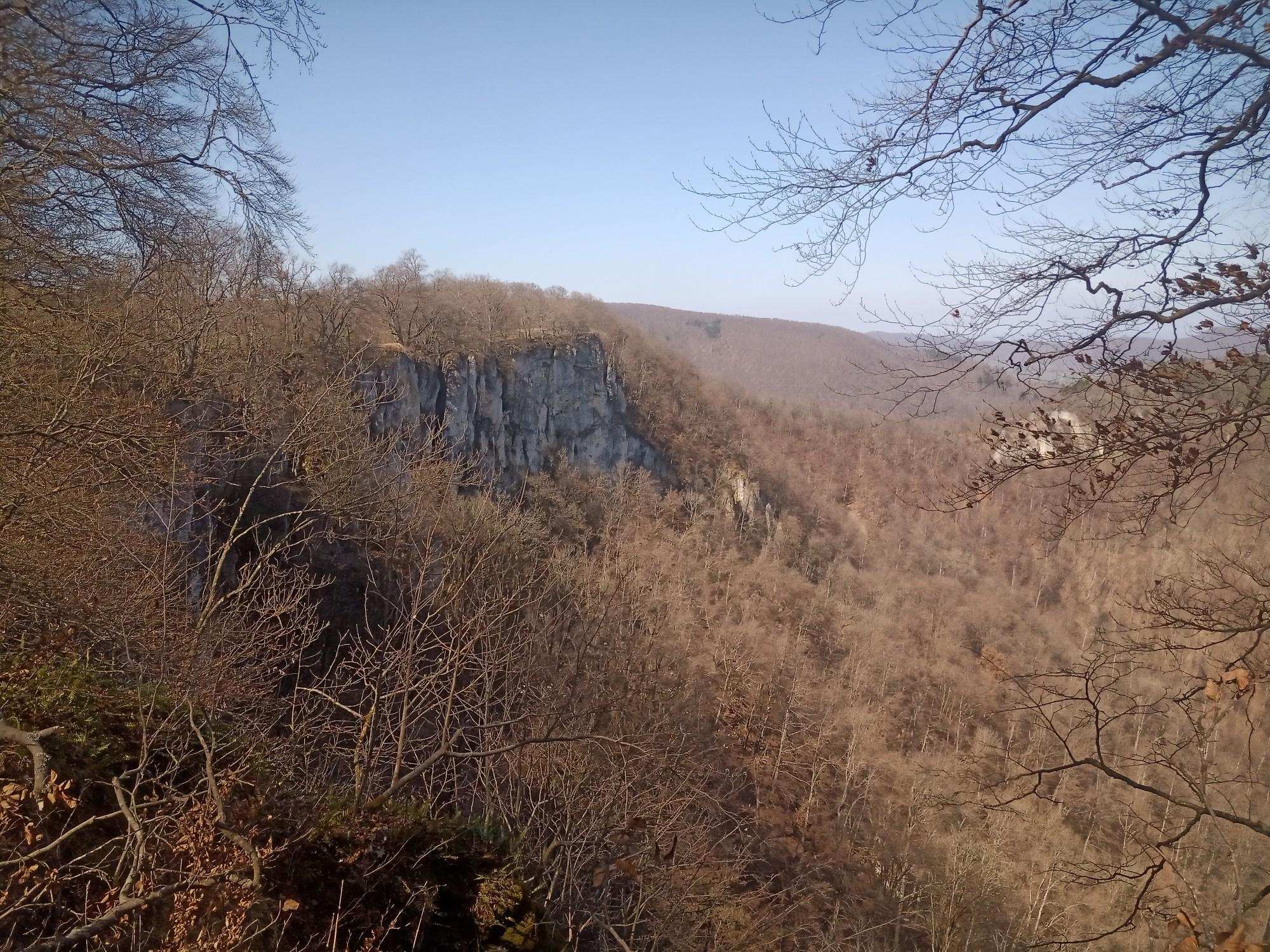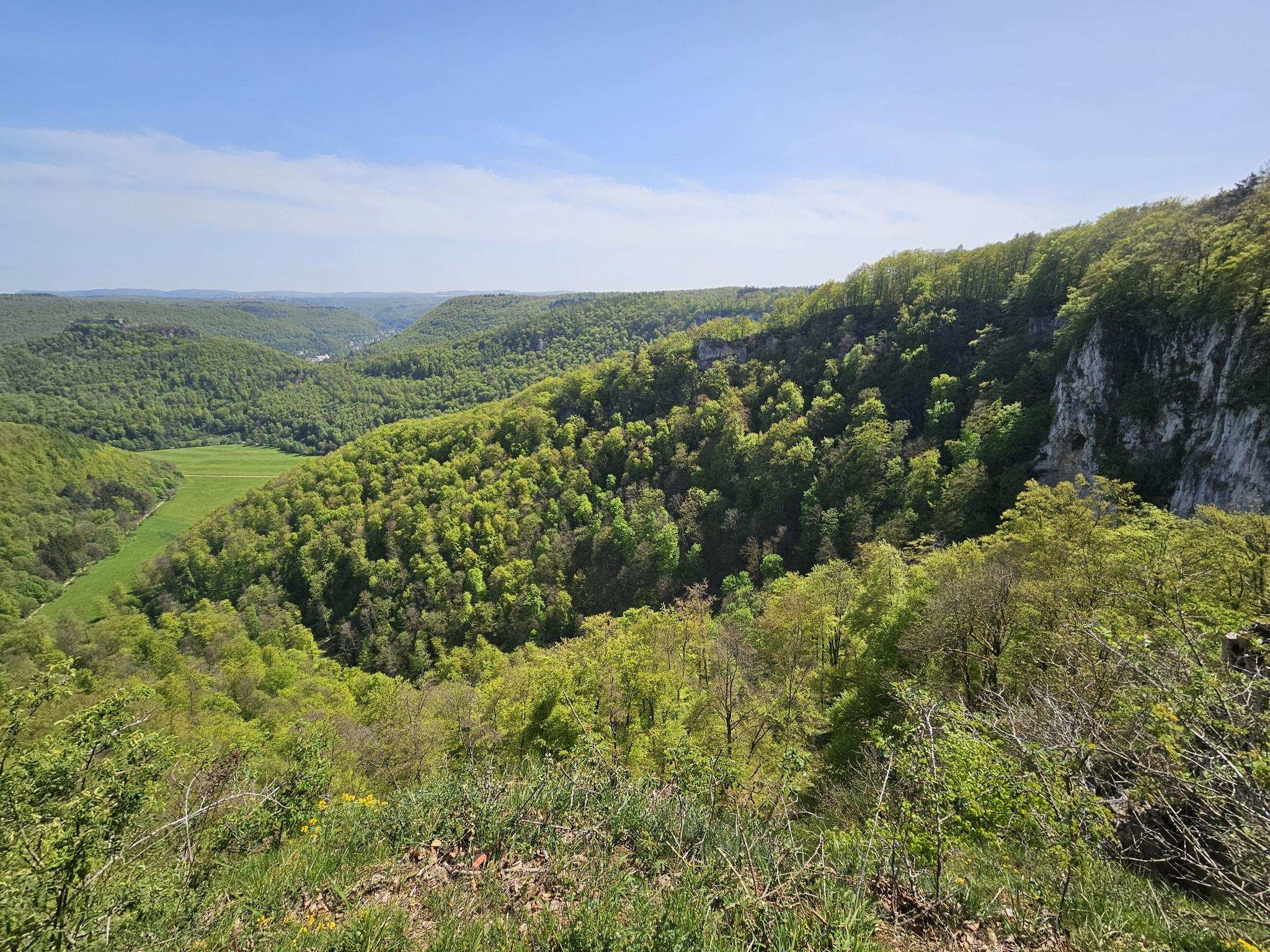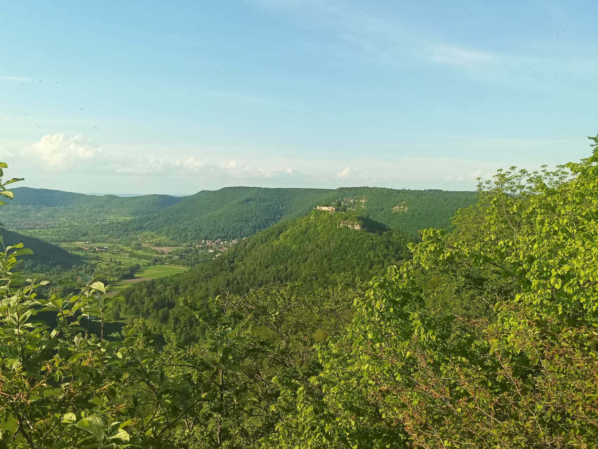Herrliche Aussicht vom Eppenzillfelsen auf Ruine Hohenurach